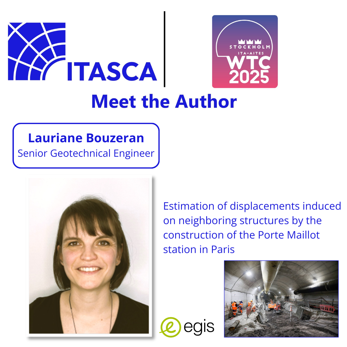 Lauriane Bouzeran to present a case study titled ‘Estimation of displacements induced on neighboring structures by the construction of the Porte Maillot station in Paris’ as part of the poster presentations.